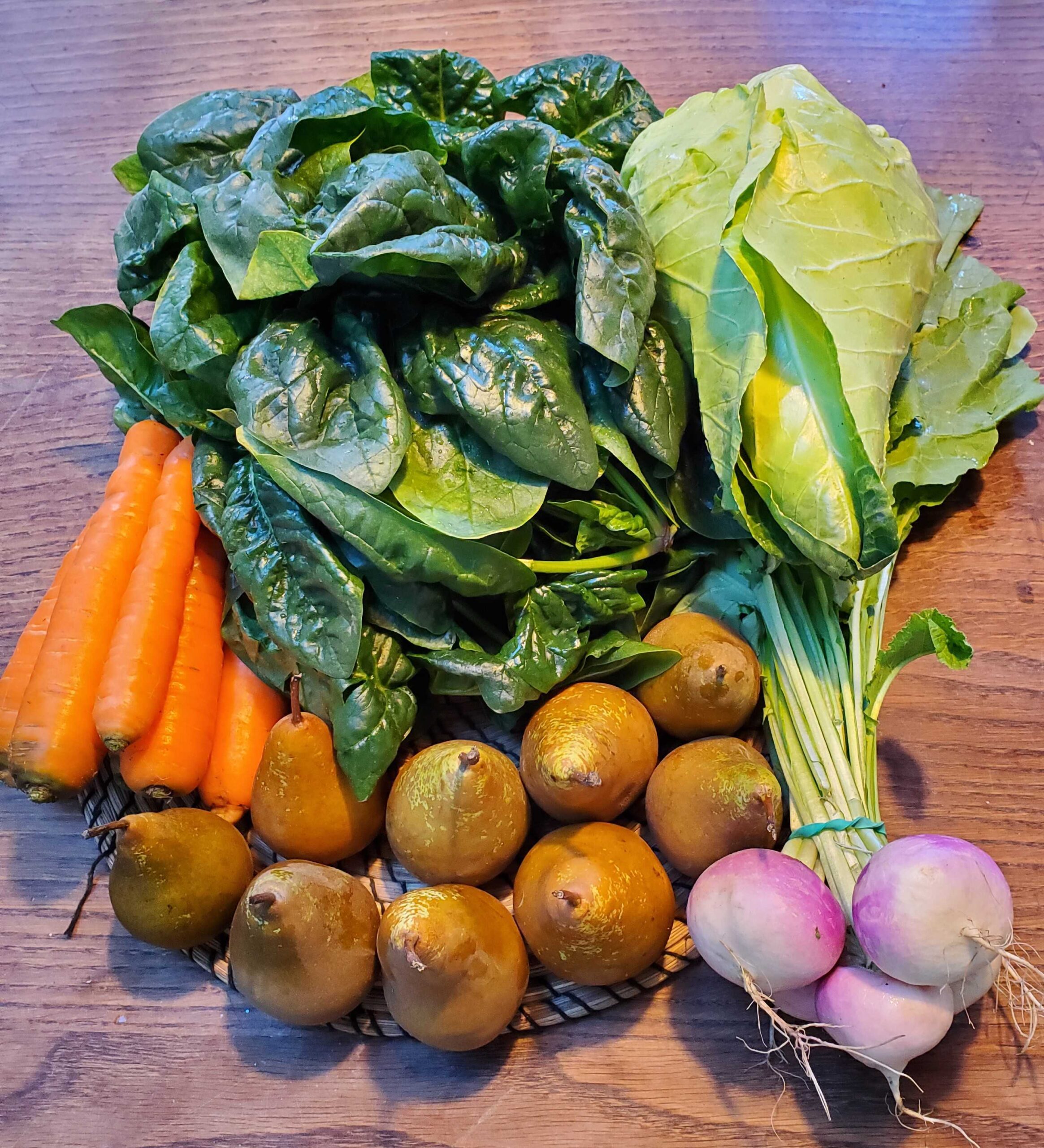 En fonction de vos commandes, nous récoltons les légumes dans les champs et préparons avec amour vos paniers, à récupérer chez nos partenaires Rochelais (points de retraits bénévoles) !