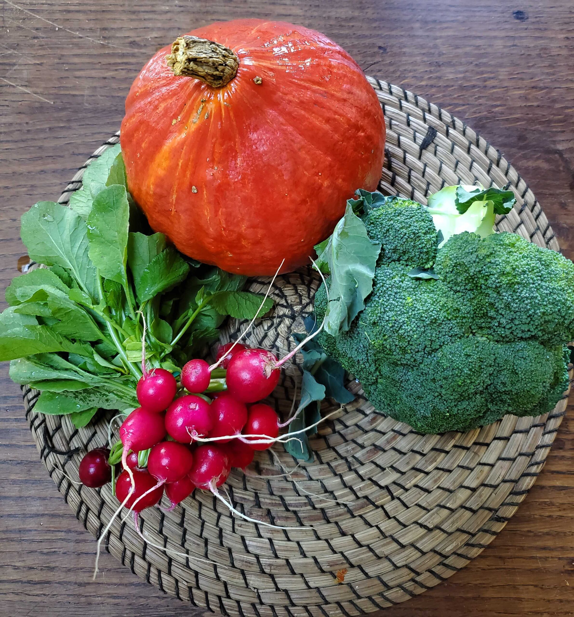 En fonction de vos commandes, nous récoltons les légumes dans les champs et préparons avec amour vos paniers, à récupérer chez nos partenaires Rochelais (points de retraits bénévoles) !
