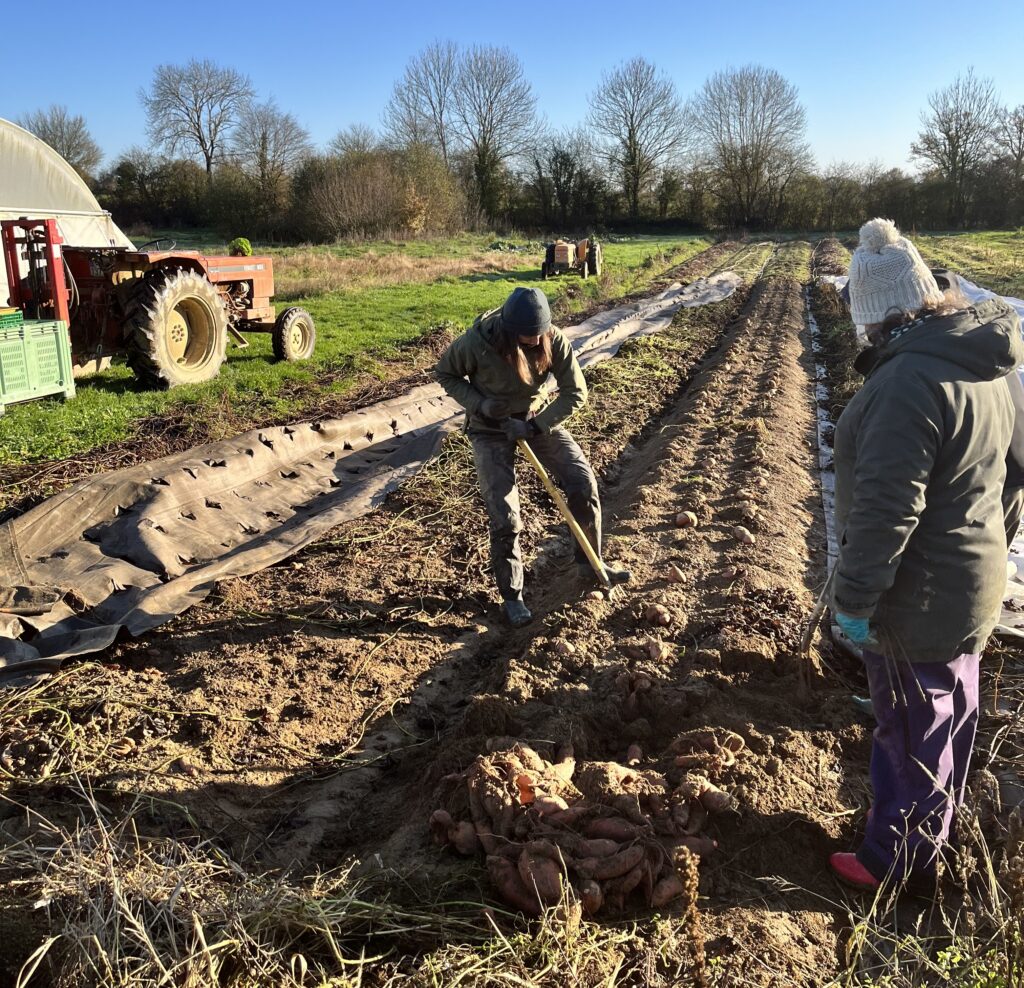 Le froid est là - 5 degrés annoncés demain matin à la ferme et nos patates douces risquent de geler, nous tentons de les récolter dans l'urgence...